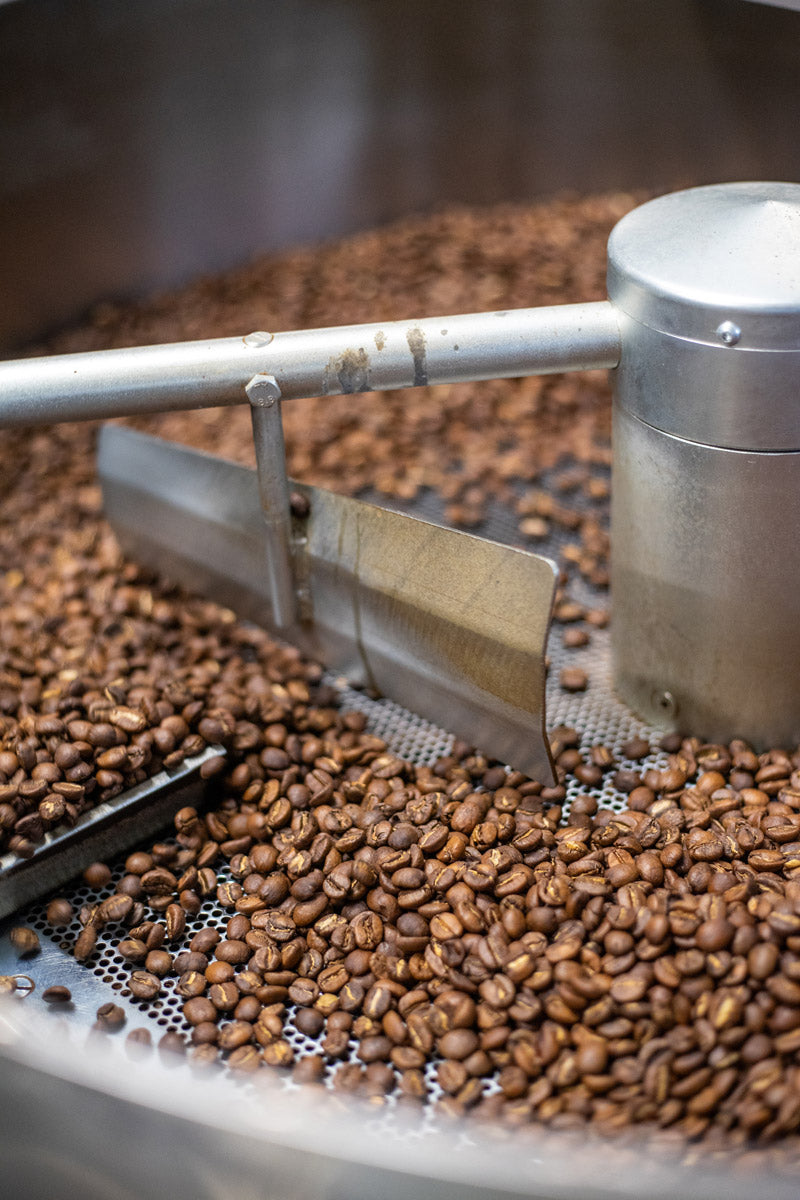 Seit August 2025 rösten wir auf einem Loring S35 Kestrel Trommelröster. Beheizt wird unsere Röstmaschine mit Gas. Unsere Abluft filtern wir umweltfreundlich mit einem antistatischen Filter. Wir rösten alle Kaffees separat und kontrollieren jede Charge auf Fehlbohnen, Farbwertabweichungen und auf Einbrandhomogenität. Alle Profilabläufe werden erfasst und aufgezeichnet.